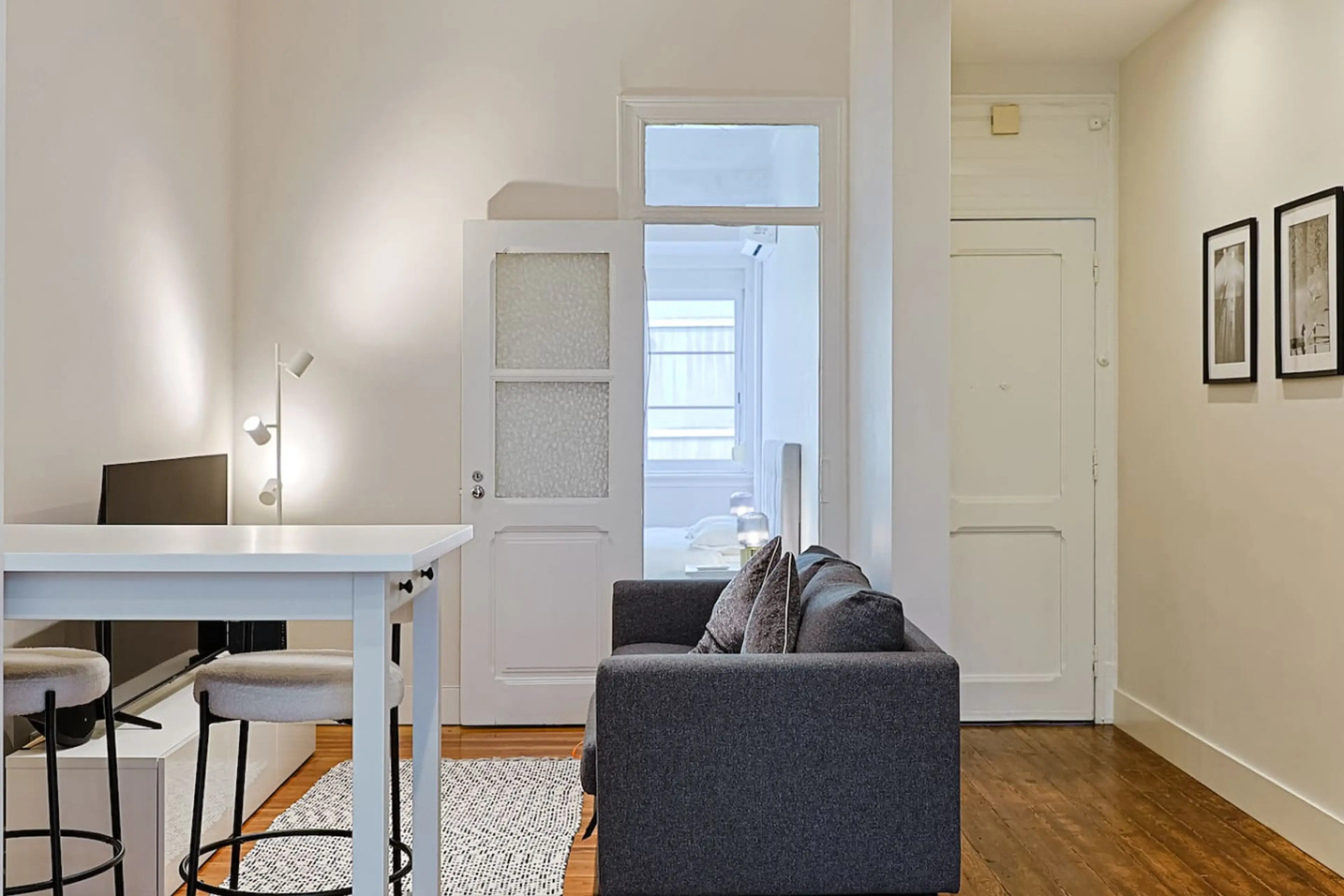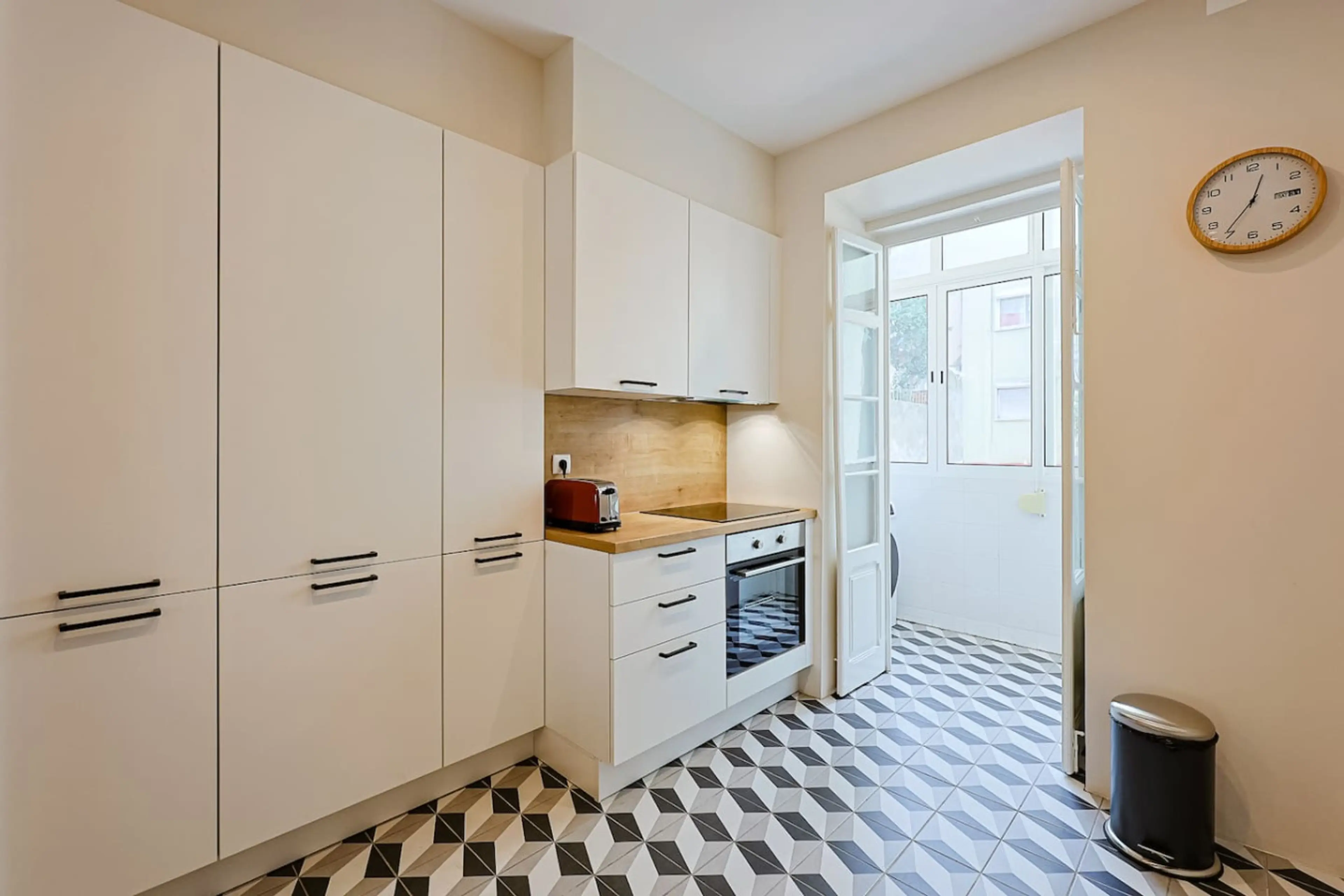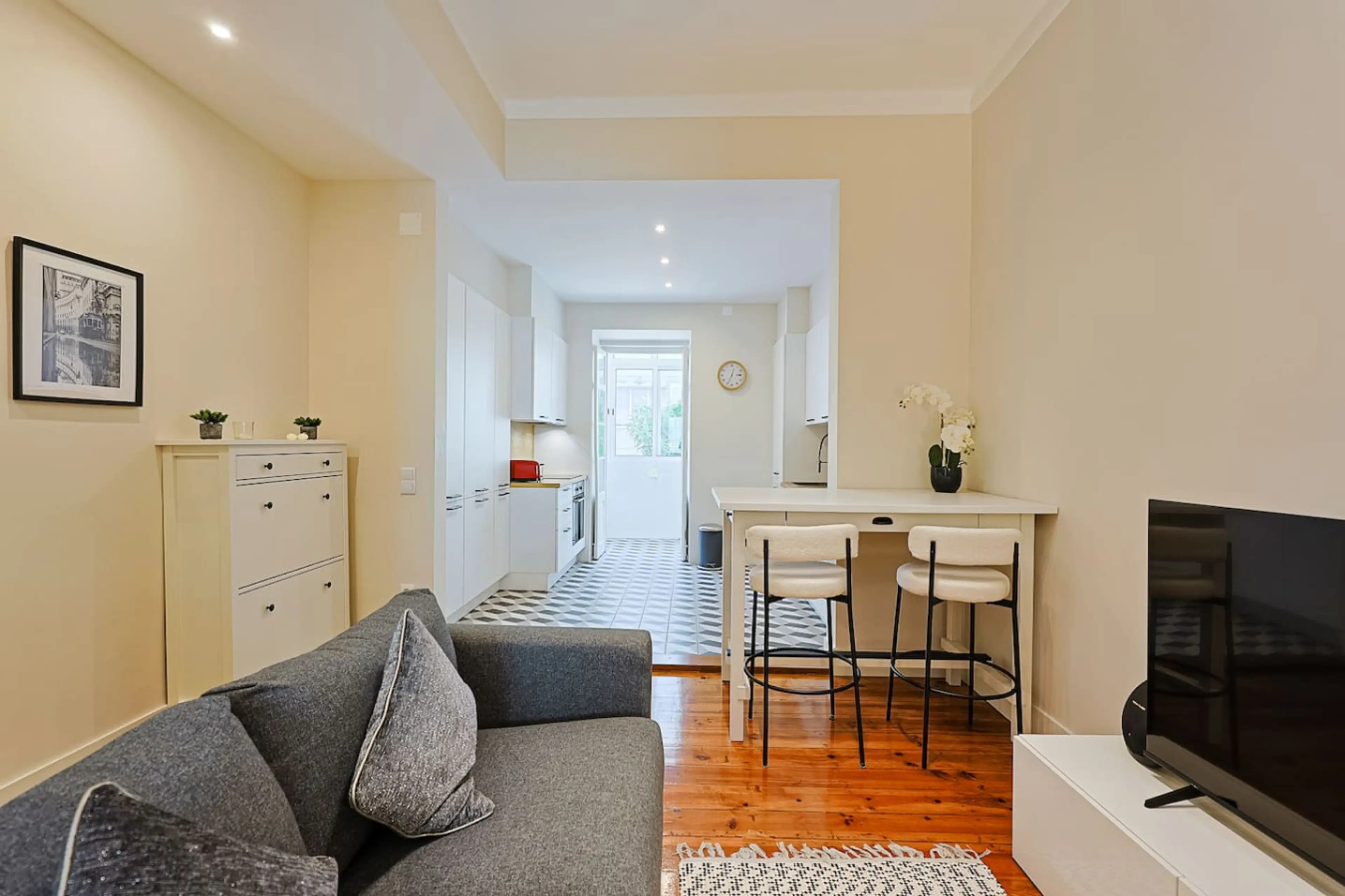 This modern and bright apartment offers a comfortable and refined living experience in a calm yet central Lisbon location. Thoughtfully designed, it features a bedroom with air conditioning, a light-filled living area that flows seamlessly into the kitchen. The fully equipped kitchen includes essen...
